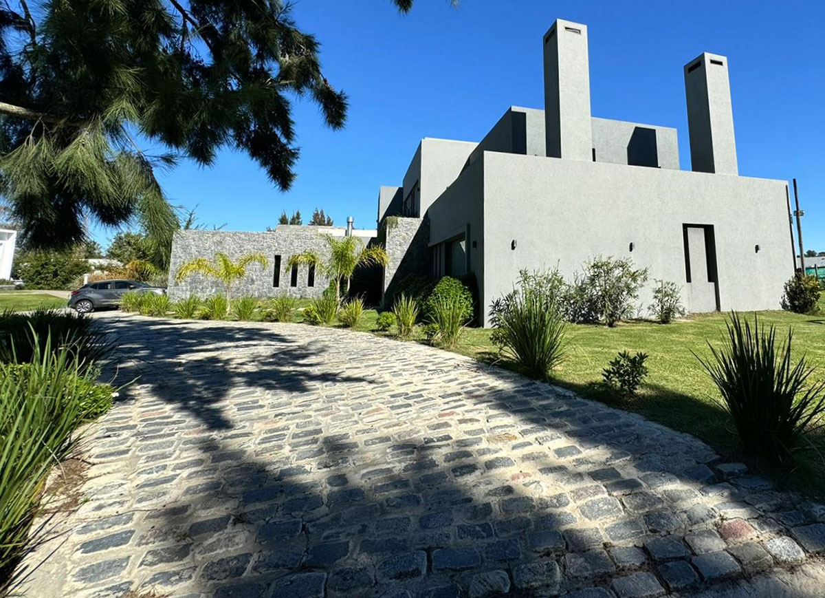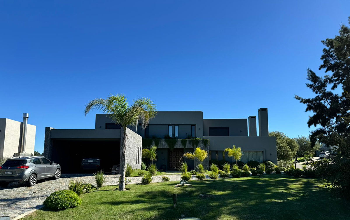 Se trata de una vivienda unifamiliar ubicada en Altos de la Tahona. De estilo minimalista y construcción tradicional, su implantación en un predio en esquina aprovecha el asoleamiento y destaca el diseño de las fachadas. Cuenta con 4 dormitorios, living, comedor, cocina definida, cochera doble y parrillero techado con deck exterior. El jardín cuenta con una piscina abierta y un cuidado diseño de paisajismo, acorde al entorno del barrio.