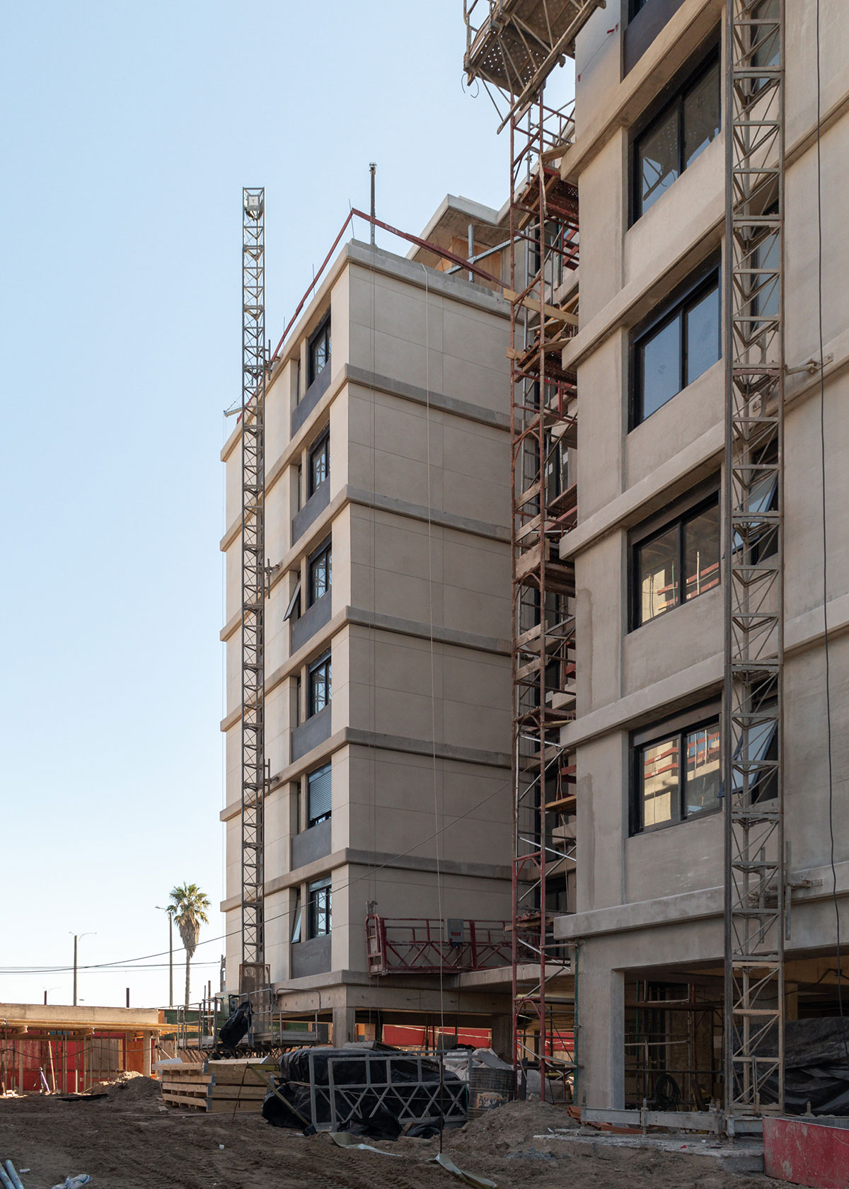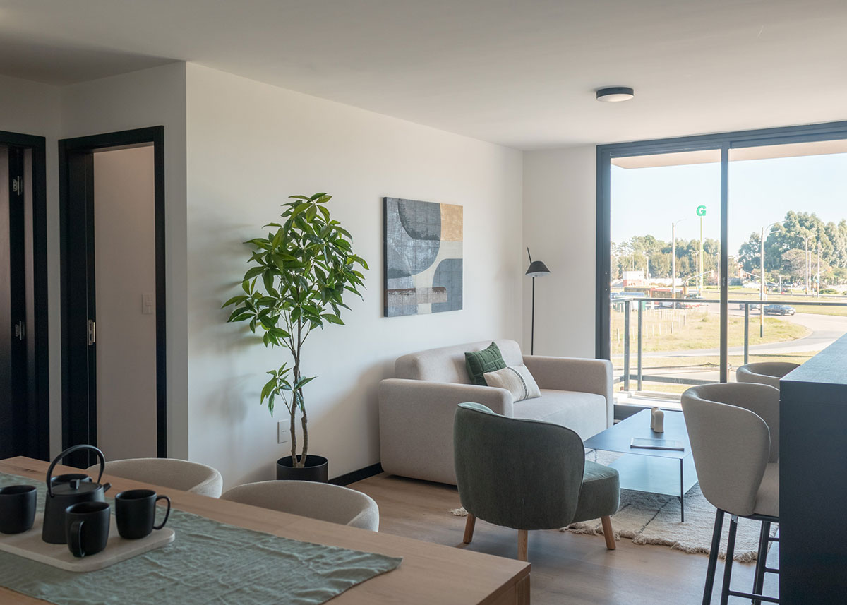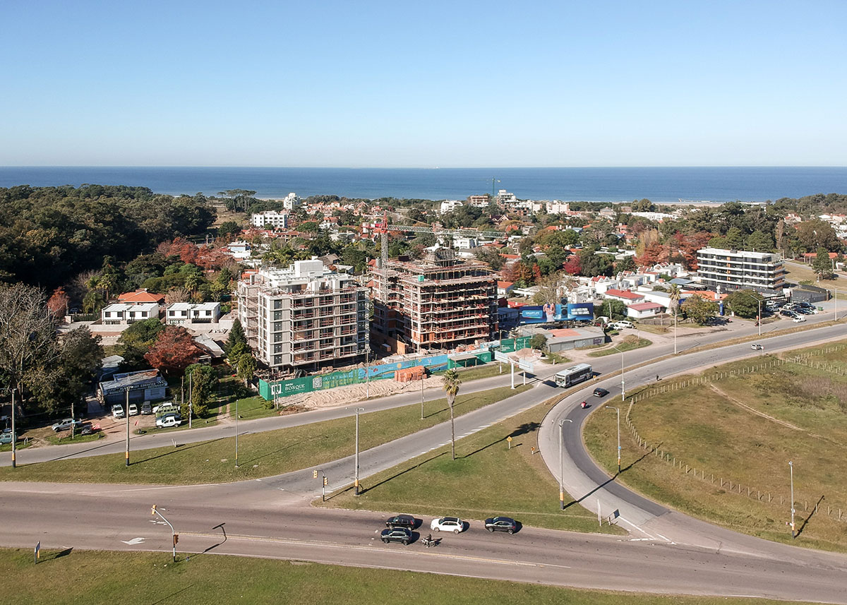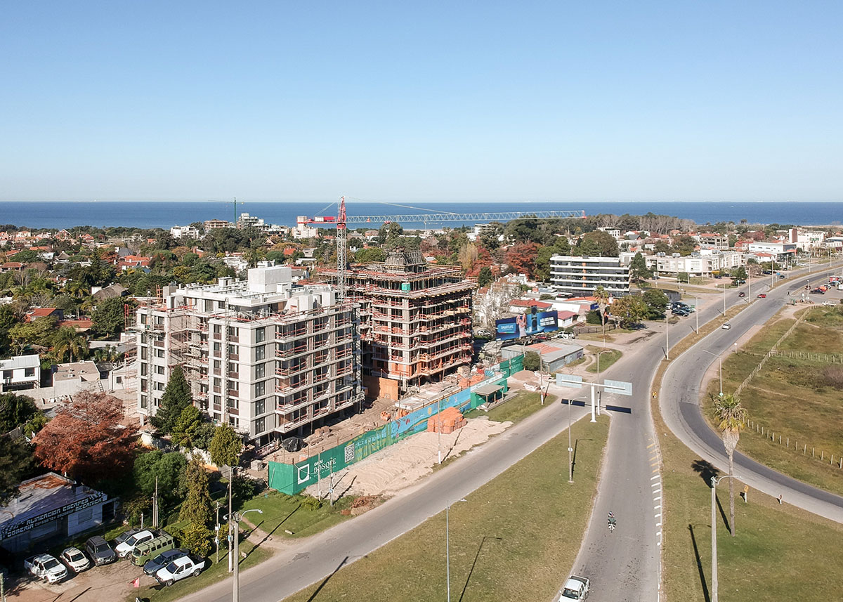 Descripción Se trata de un proyecto de vivienda colectiva implantado en un predio con frente hacia tres calles: Av. al Parque, Av. a la Playa y calle Piriápolis. Hacia Av. al Parque, se ubican dos bloques de apartamentos simétricos. En planta baja cuenta con hall de acceso, gimnasio, cowork, bicicletero, depósito, lavadero y sala de estar, y el resto se mantiene libre con cocheras.