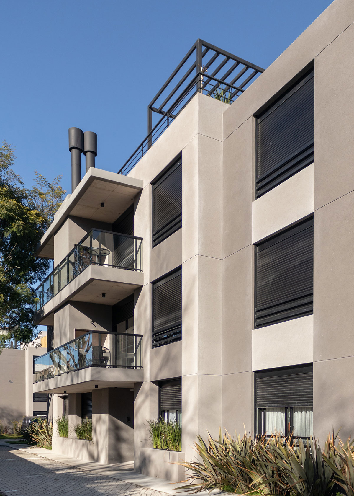Descripción Ubicado en el barrio Prado, se trata de 2 torres de planta baja + 2 niveles. Consta de 10 apartamentos de 1 dormitorio, 10 apartamentos de 2 dormitorios y 2 apartamentos de 3 dormitorios. Todos con terraza con parrillero. Además cuenta con los siguientes amenities: barbacoa de uso común, terraza con solarium y sombráculo, rack para estacionar bicicletas y laundry con área de tenders.