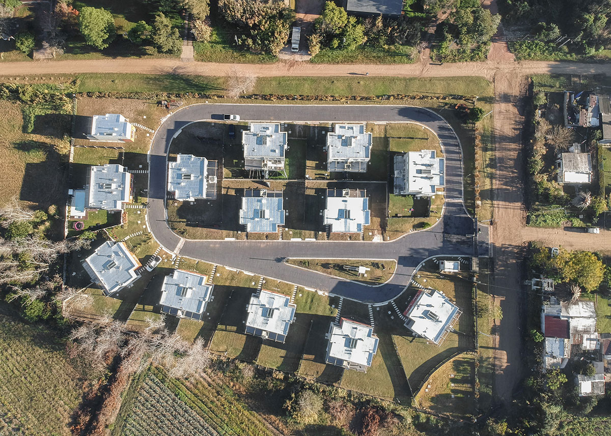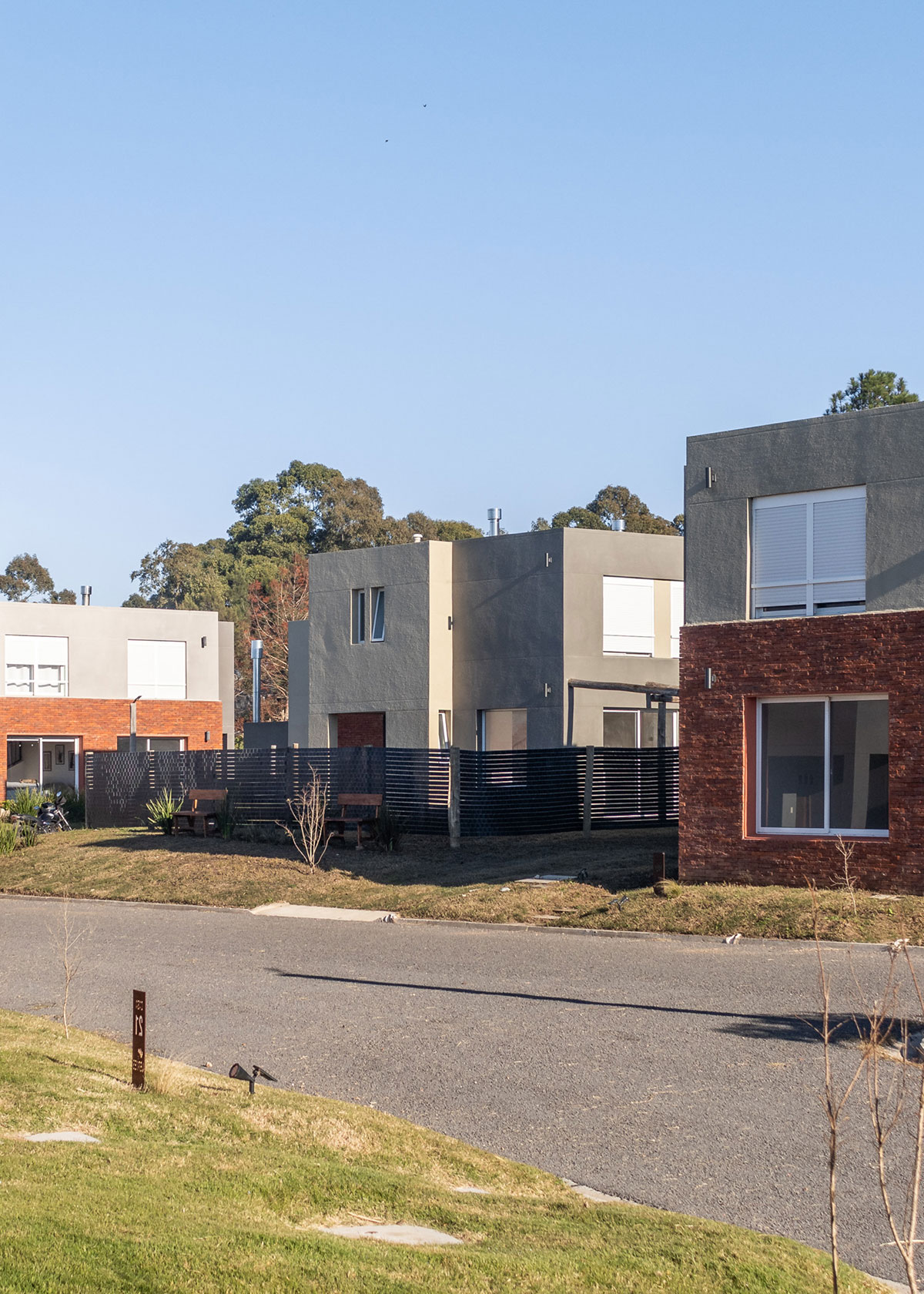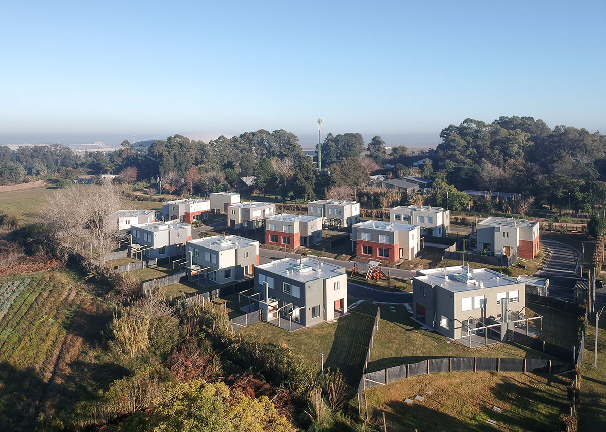 Conjunto residencial ubicado en Ciudad de la Costa, muy próximo al Aeropuerto de Carrasco. Consta de 25 casas de 95m2, con 3 dormitorios, 2 baños y toilette, cocina semi-integrada, comedor y living, con amplios jardines con parrillero exterior. El predio se encuentra cercado con un único acceso controlado, videovigilancia y guardia perimetral. Cuenta con calles vehiculares internas y una plaza central con juegos de niños, rodeada de entorno natural.